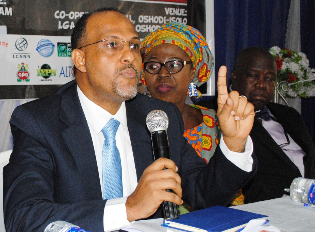 CEO IXPN Mr Muhammed Rudman speaking at Nigeria DigitalSENSE Forum series 2018, while Executive Director, Operators DigitalSENSE Africa Media and convener of NDSF, Mrs...