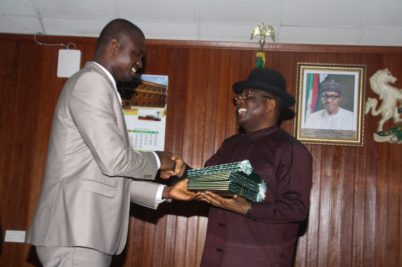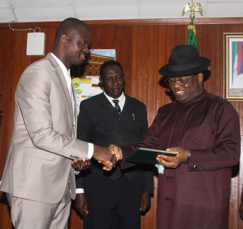 Ebonyi State Governor, Engr. Dave Umahi (Right), receiving some bills from the Speaker, Ebonyi State House of Assembly, Francis Nwifuru for his assent at the Exco Chamber, Government House, Abakaliki on Thursday.