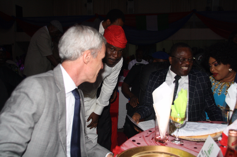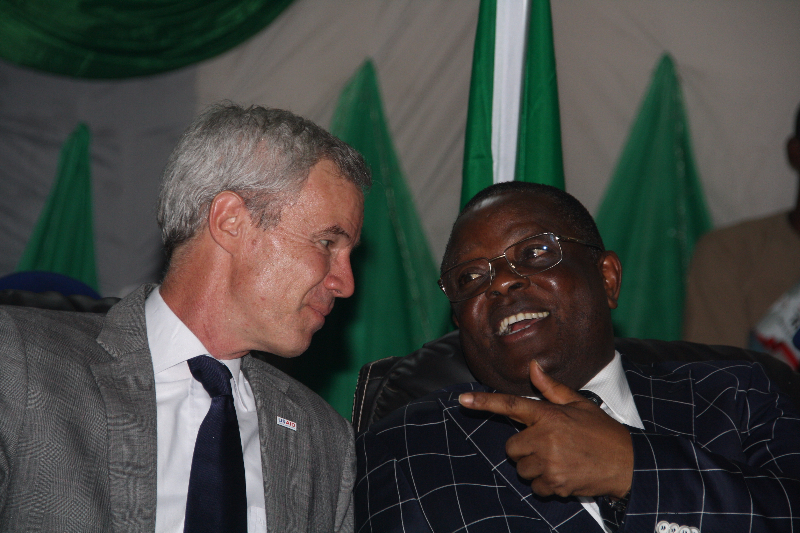 L-R: USAID Mission Director in Nigeria, Mr Michael T Harvey and Governor Dave Umahi of Ebonyi State during official handover of long lasting Insecticidal Nets to the State Government in Abakaliki on Wednesday.
