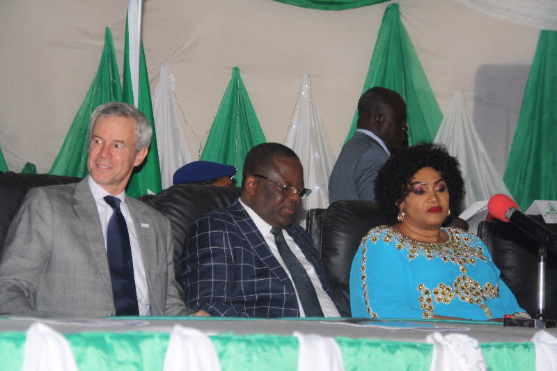L-R: USAID Mission Director in Nigeria, Mr Michael T Harvey; Governor Dave Umahi of Ebonyi State; and wife of the Governor, Rachael Umahi during official handover of long lasting Insecticidal Nets to the State Government in Abakaliki on Wednesday.