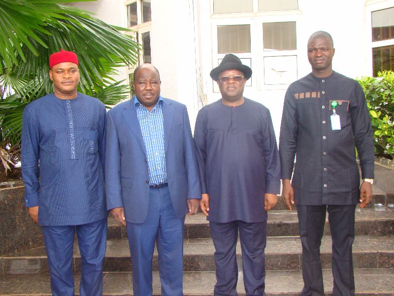 R-L: Speaker, Ebonyi State House of Assembly, Francis Nwifuru; Governor of Ebonyi State, Engr. David Umahi; Chairman, Signal Group Ltd and former Borno State Governor, Ali Modu Sheriff; and Deputy Governor of Ebonyi State, Kelechi Igwe during the ex- governor’s visit to the Government House, Abakaliki on Friday