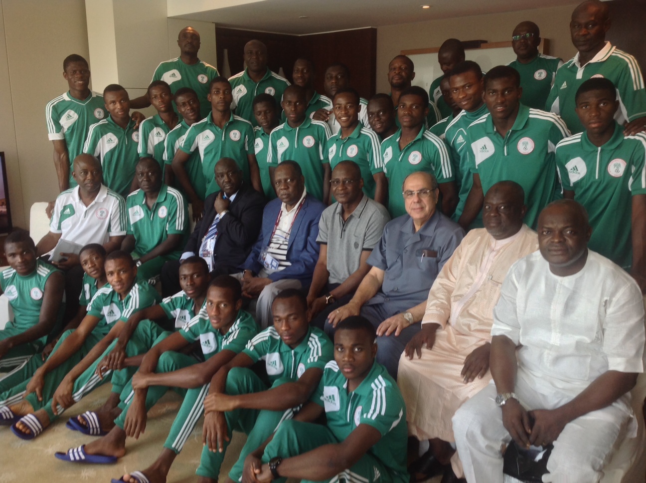 Dr. Issa Hayatou, President of Confederation of African Football(CAF) on Monday visited the Golden Eaglets at their Intercontinental Dubai Festival City Hotel with a clarion call on the Nigerian youngsters to write their names in gold by winning the FIFA Under-17 World Cup UAE 2013.