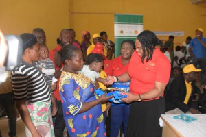 SPDC team, led by Social Performance/Investment Manager, Mrs. Gloria Udoh (right), at the presentation of relief materials to flood victims in Bayelsa State.