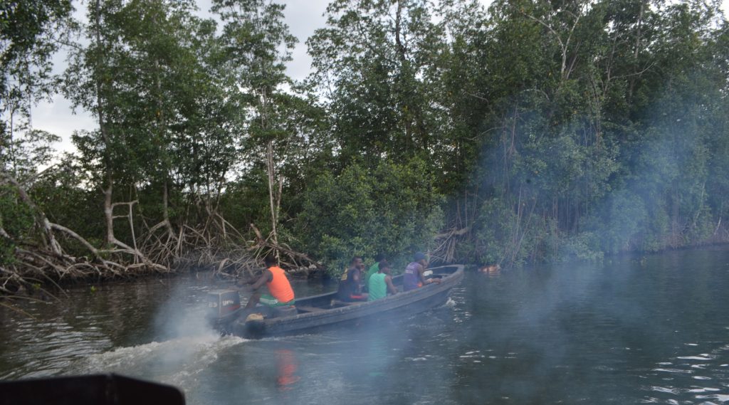 LOCAL DIVERS IN SEARCH OF DEAD BODIES AT AWOBA, IN RIVERS SCENE OF A FIRE DISASTER AT NEMBE CREEK TRUNK LINE, SIx SUSPECTED PIPELINE VANDALS REPORTEDLY DIED IN THE INFERNO. 24/4/2019