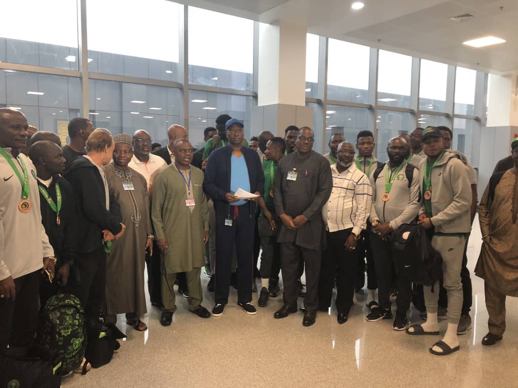 The SGF, Mr. Boss Mustapha led a delegation that included the President of the Nigeria Olympic Committee and Nigeria’s IOC Member, Engineer Habu Ahmed Gumel; Permanent Secretary, Ministry of Youth and Sports, Mr. Olusade Adesola; directors in the Ministry led by Mrs Hauwa Kulu-Akinyemi and; Management Staff of the NFF that included Deputy General Secretary, Dr. Emmanuel Ikpeme and the Director of Competitions, Mr. Bola Oyeyode who coordinated the reception arrangement.