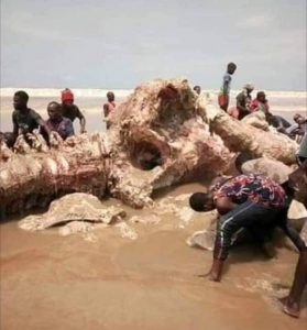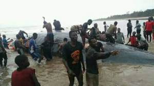 Villagers descended on a whale trapped when it missed its way to the Opokuma sea area in Nigeria’s Bayelsa state and hacked it into bits for food. The incident happened yesterday, July 29, 2019 in the Brass area of Bayelsa state. According to our correspondent who visited the scene, as news of the trapped whale spread quickly, villagers trooped from all directions with axes, machetes and a power chainsaw to harvest meat and ended up scraping the trapped whale to the bones. To stop the recurrence of such an incident, www.Africanewscircle.com plans a sensitization exercise on conservation in the area and hereby invites interested organizations and aid agencies willing to work with it anytime in the project to reach out to its publisher.