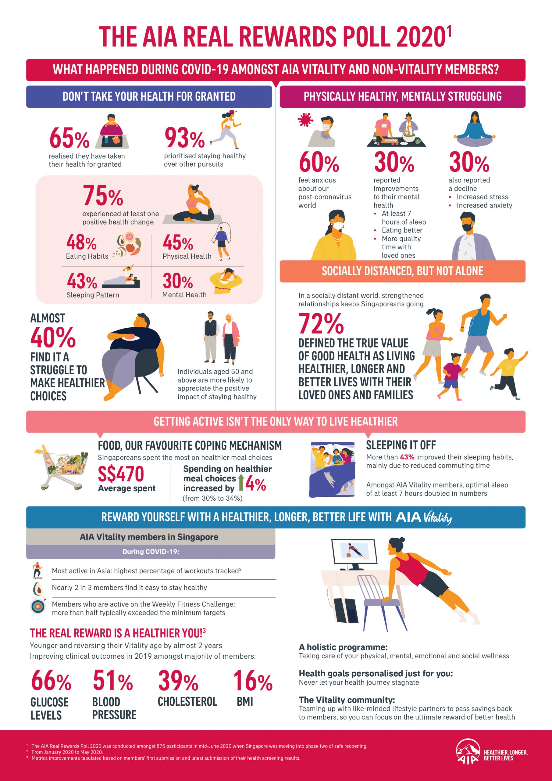 Takeaways from the AIA Real Rewards Poll 2020 highlight the value of an all-rounded approach to health, and provides insights on opportunities to further support Singaporeans on their health journey