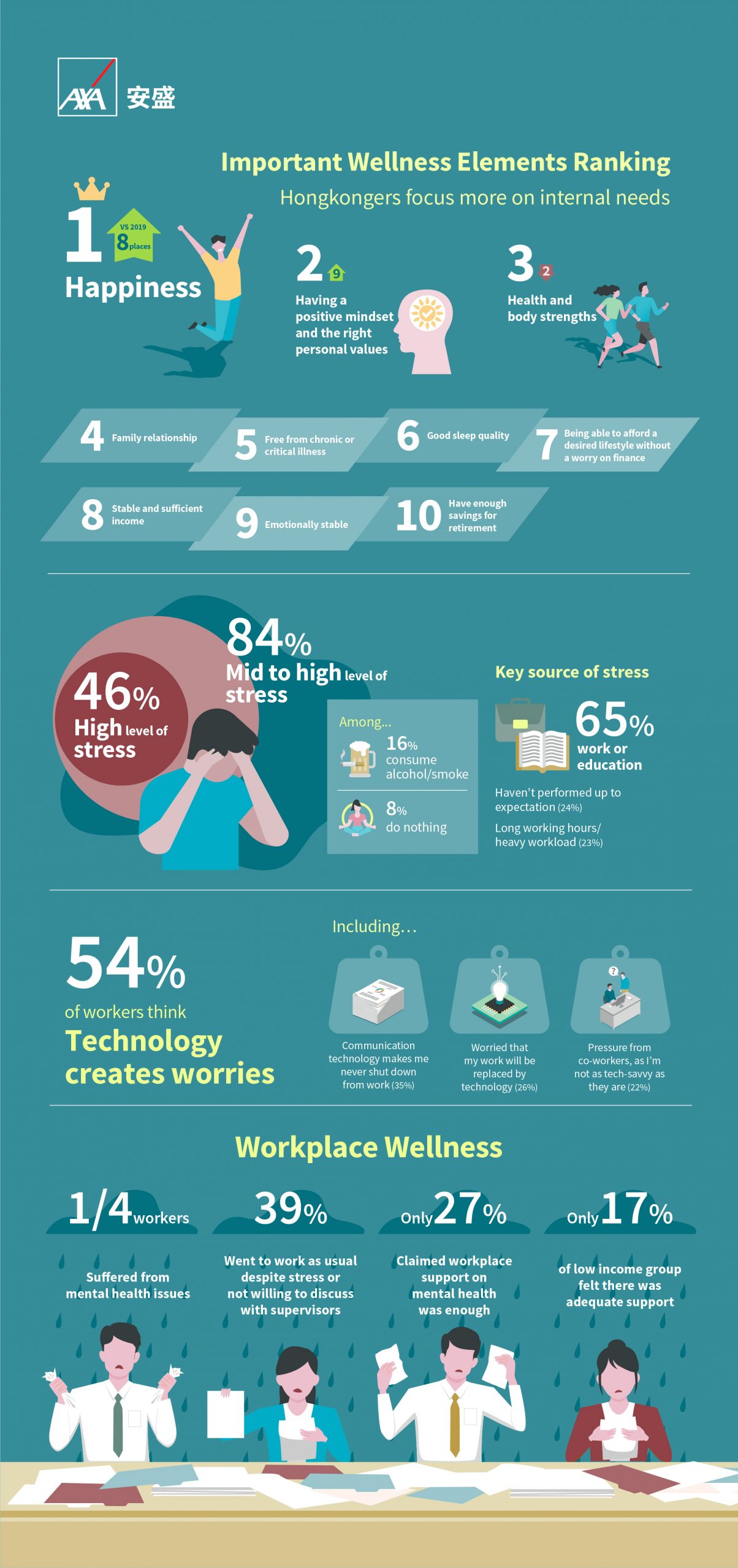 - o Hong Kong’s workplace stress tops the region, but only 27% of working class in Hong Kong considered mental health support from employers was adequate.
