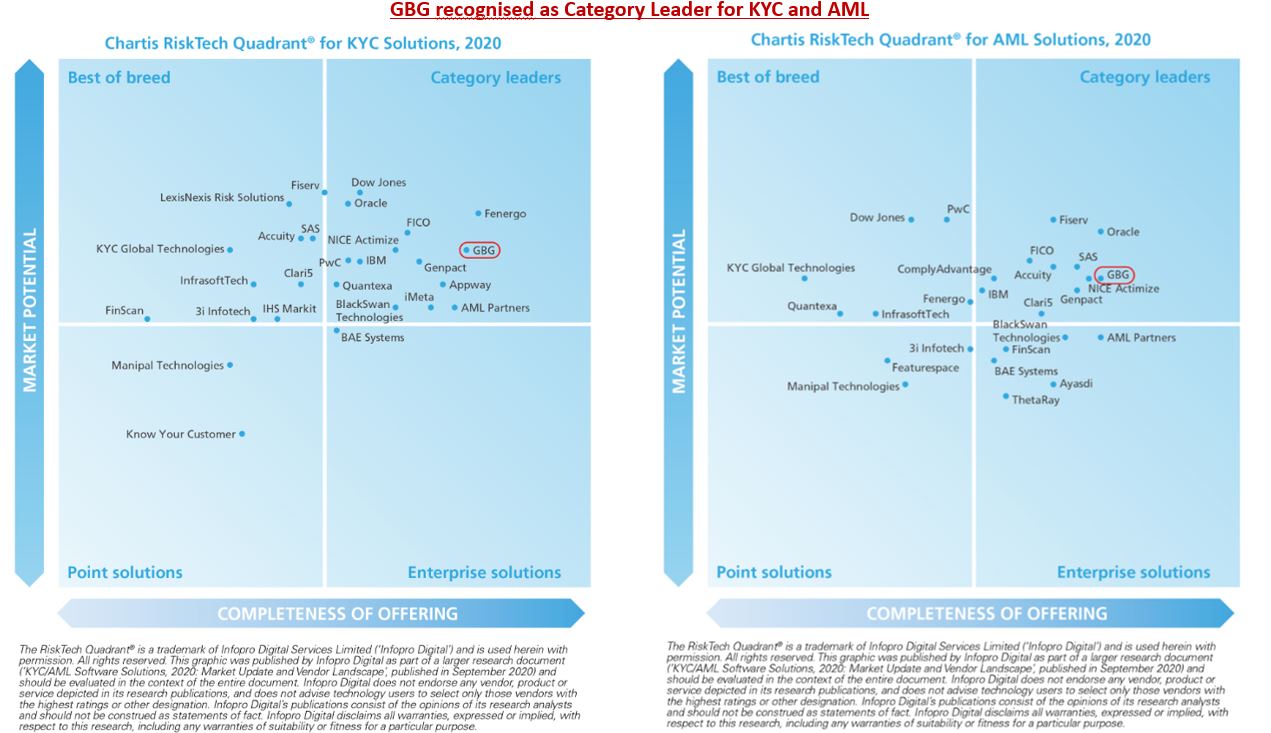 Leader for Know Your Customer (KYC) and anti-money laundering (AML) in both the