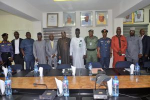 Brig Gen Maina and some team members from the Operation Safe Corridor were received by Director General of NEMA Mustapha Habib Ahmed in company of Directors of the Agency.