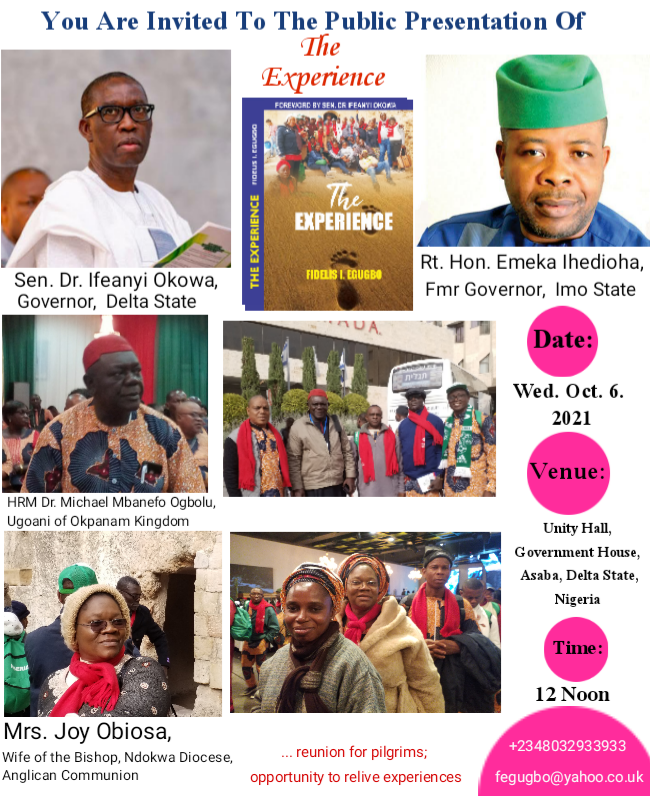 “The Experience is a rare book about Christian religious pilgrimage and how Governor Ifeanyi Okowa has ensured that Christian pilgrimage is sustained despite all odds.