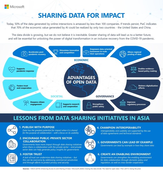 Mike Yeh, Regional Vice President and Director of Corporate, External and Legal Affairs, Microsoft Asia, said: “Data is indispensable to managing some of Asia’s most urgent challenges – from combatting the pandemic, to reducing carbon emissions, and tackling cybersecurity. Regardless of the problem that Asia faces, there’s a good chance that data can be part of the solution. Asia is uniquely poised to be a leader in unlocking the potential of data sharing, as a populous, mobile-first region. But we know that unlocking that potential can only happen when a foundation of trust is established, and when the public and private sectors work together. At Microsoft, we are committed to partnering and growing with governments and organizations in the region to unlock the plentiful opportunities data can bring to Asia.”