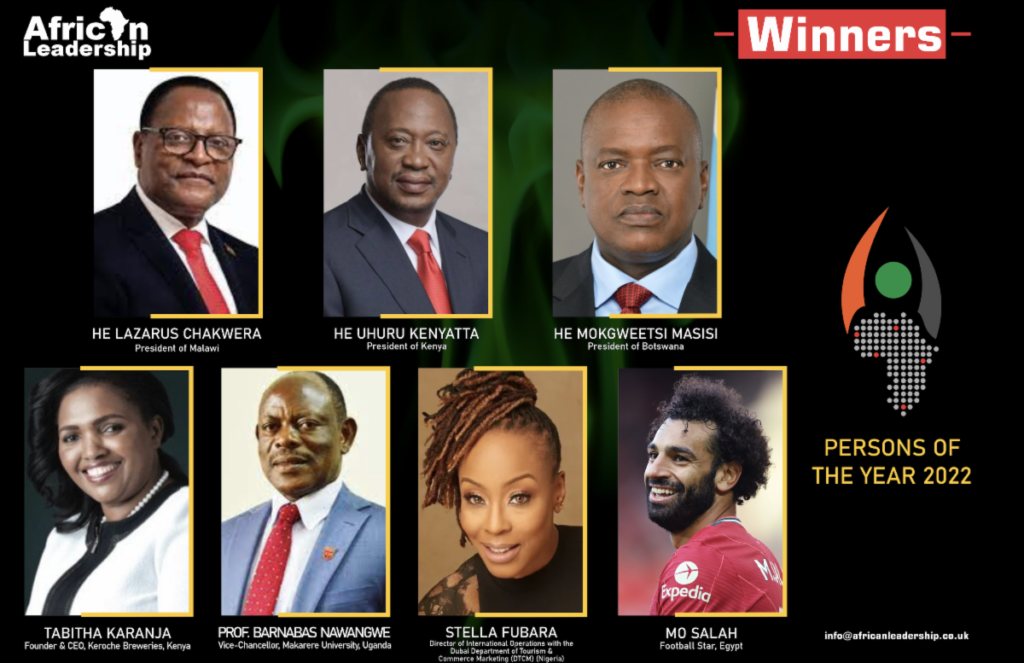 PORTSMOUTH, United Kingdom, January 12th, 2021,-/African Media Agency(AMA)/- The African Leadership Magazine Persons of the Year Awards committee has unveiled the President of Kenya, Uhuru Kenyatta, as the African Political Leader of the Year 2021; the President of Botswana, Mokgweetsi Masisi, as the African Peace & Security Leader of the Year 2021; Egyptian Football Star, Mo Salah, as ALM Young person of the Year 2021, alongside five other distinguished Africans in a keenly contested poll.