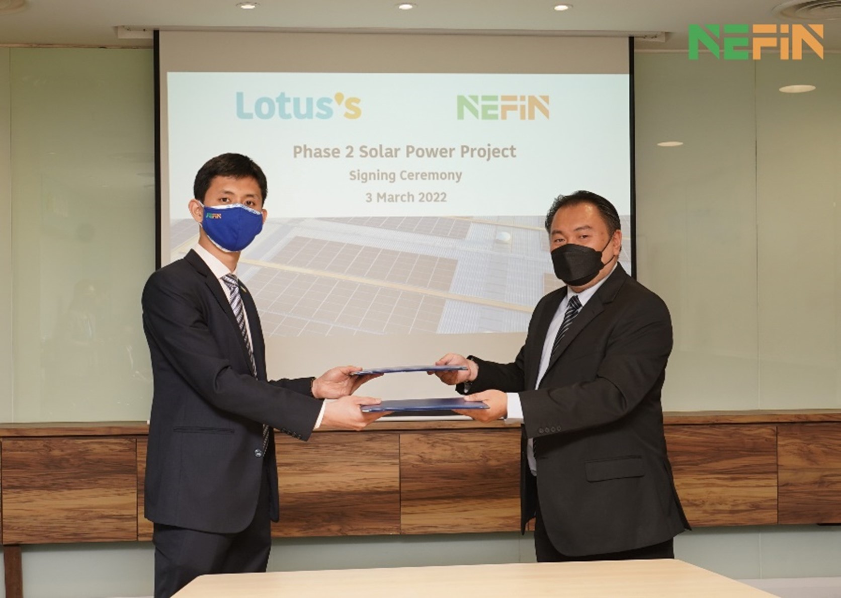KUALA LUMPUR, MALAYSIA – Media OutReach – 3 March 2022 – In support of its Group’s ambition to be a net zero carbon organization by 2030, Lotus’s Stores (Malaysia) Sdn Bhd (“Lotus’s Malaysia”) had on 3 March 2022 entered into its second Power Purchase Agreement (PPA) with Asia’s renowned premium carbon neutral and financing solutions company, NEFIN Group (“NEFIN”).