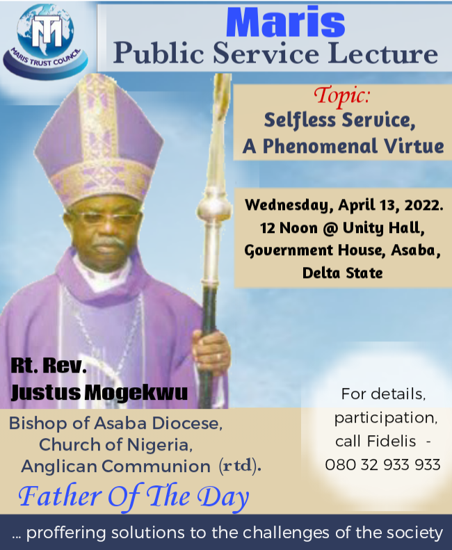 “Also, Ambassador Godson Echegile, OFR, former Nigerian Ambassador to Sierra Leone, will be Chairman of occasion, the immediate past Bishop of Asaba Diocese of the Anglican Communion, Rt. Hon. Justus Mogekwu, a Septuagenarian is being pulled out from his retirement to attend the lecture as Father of the Day and Dr. Mrs. Cecilia Ibru, OFR, MFR, another Septuagenarian who is the Visitor and Co-founder of Michael and Cecilia Ibru University, will attend the lecture as Mother of the Day.