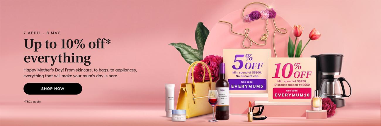 This Mother’s Day, snap up vouchers for up to 15% off sitewide and up to 75% off selected best-selling products on iShopChangi. With the promo code〈EVERYMUM5〉 , enjoy 5% off with a minimum spend of S$100 and no discount cap; with code〈EVERYMUM10〉 enjoy 10% off S$250, discount capped at S$50 Or, for a big spend, make the most of 15% off a minimum spend of S$600 (discount capped at S$100) using the promo code April 14 onwards〈EVERYMUM15〉 . All products are subject to some exclusions, with T&Cs applying.
