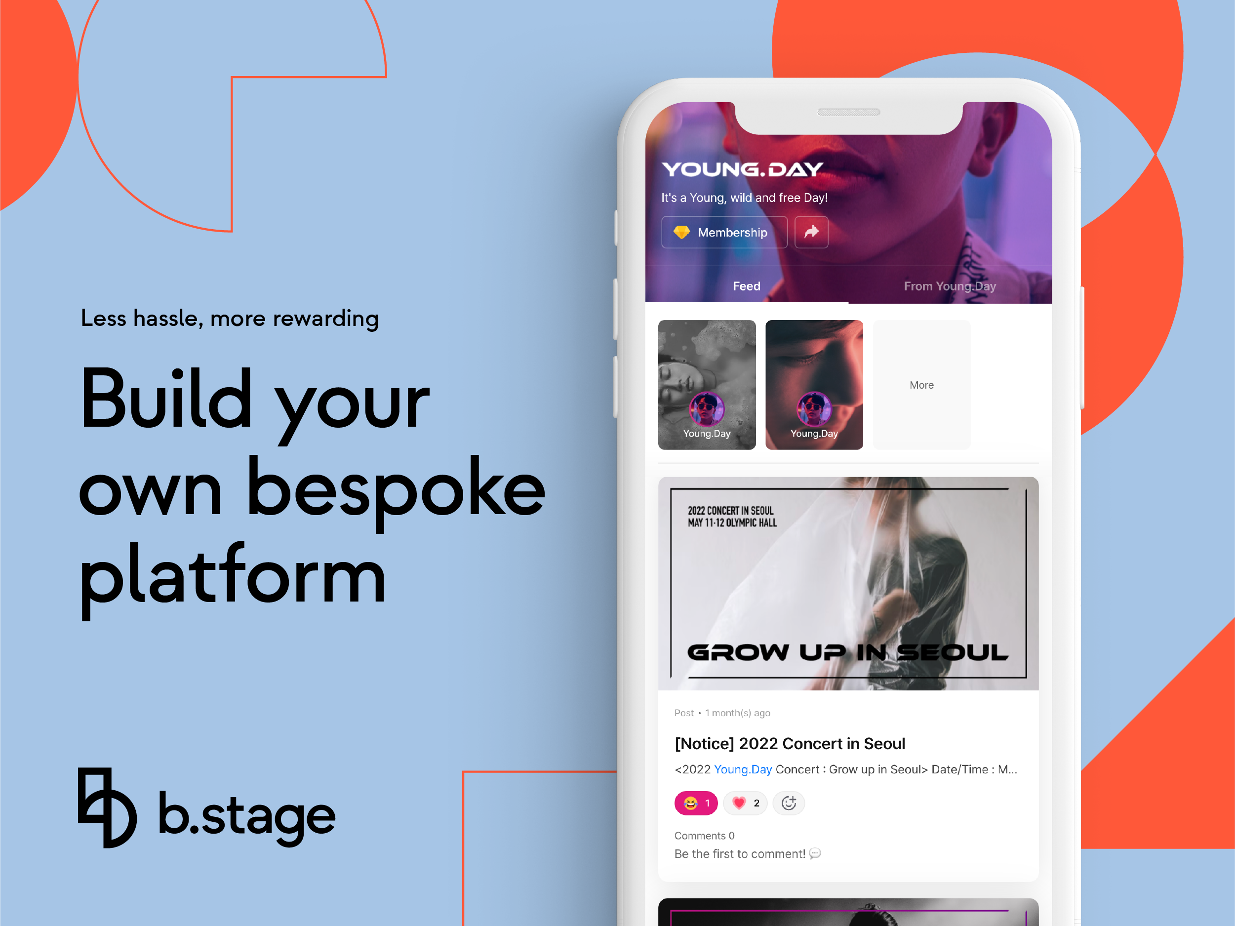 b.stage offers all the tools and services creators need to form deeper connections with their fans, and helps them turn their creations into a sustainable business with simple transactions. By easily building their own platform through b.stage, creators and iconic brands can give fans content they cannot get anywhere else.