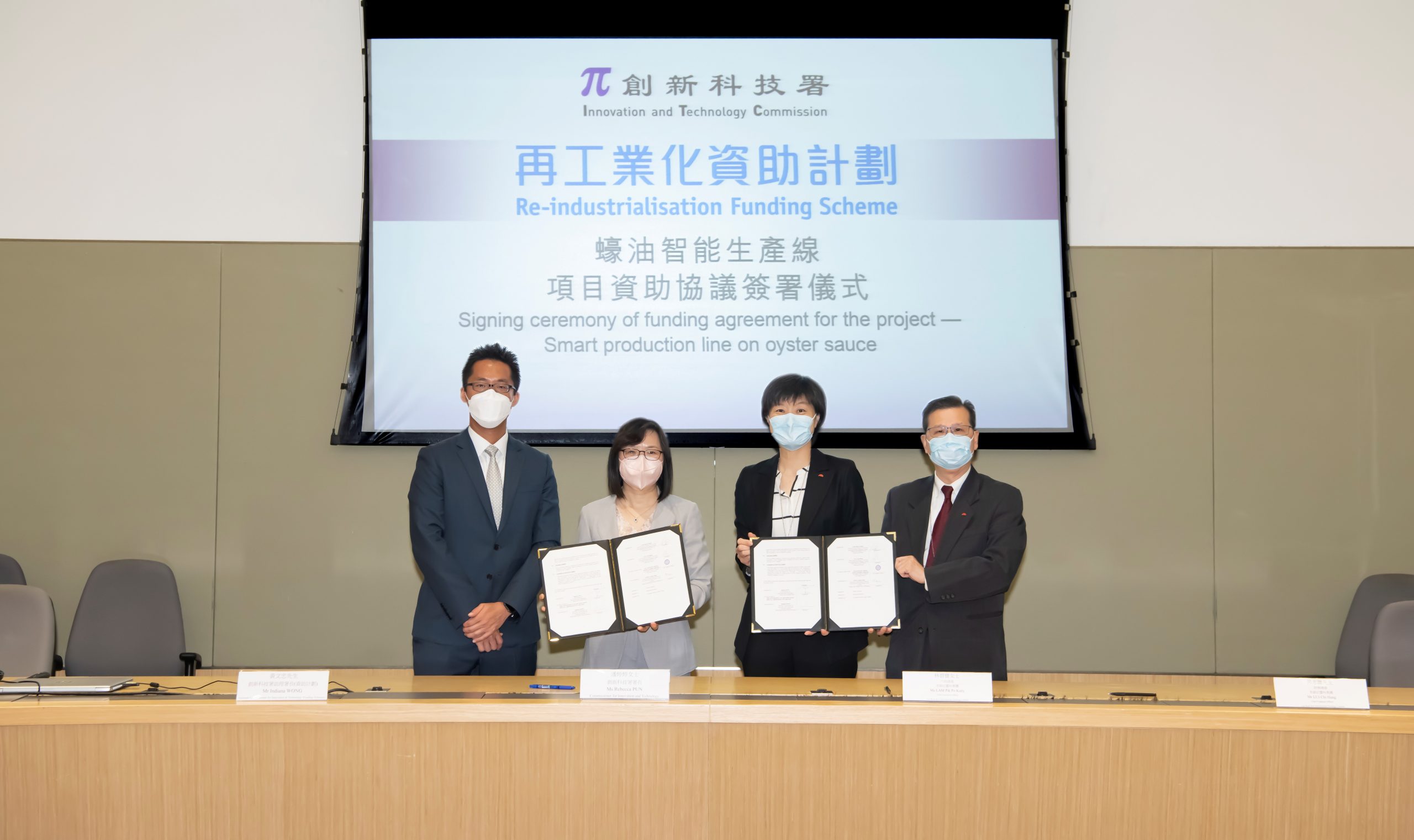 HONG KONG, CHINA – Media OutReach – 22 April 2022 – Lee Kum Kee (Hong Kong) Foods Limited announces that it has received the approval of HKD 15 million, which is the maximum level of funding support, under the Re-industrialisation Funding Scheme (RFS) of the Innovation and Technology Commission in Hong Kong. The funding will be used to set up a new Oyster Sauce Smart Production Line in its headquarters at Tai Po InnoPark (formerly known as “Tai Po Industrial Estate”). Ms. Rebecca Pun, the Commissioner for Innovation and Technology and Mr. Indiana Wong, Assistant Commissioner for Innovation and Technology (Funding Schemes), as well as Ms. Katty Lam, Chief Executive Officer (CEO) and Mr. Alan Lui, Chief Financial Officer of Lee Kum Kee International Holdings Limited signed the funding agreement at the signing ceremony on 21 April.