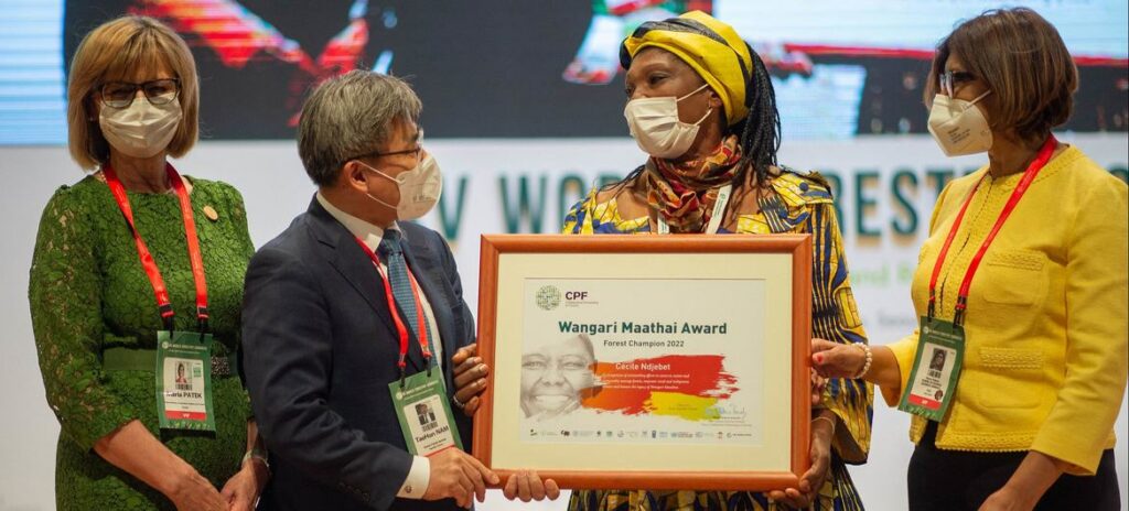 Cécile Ndjebet is the recipient of the 2022 Wangari Maathai Forest Champions Award by the Collaborative Partnership on Forests (CPF), which is chaired by the UN Food and Agriculture Organization (FAO).