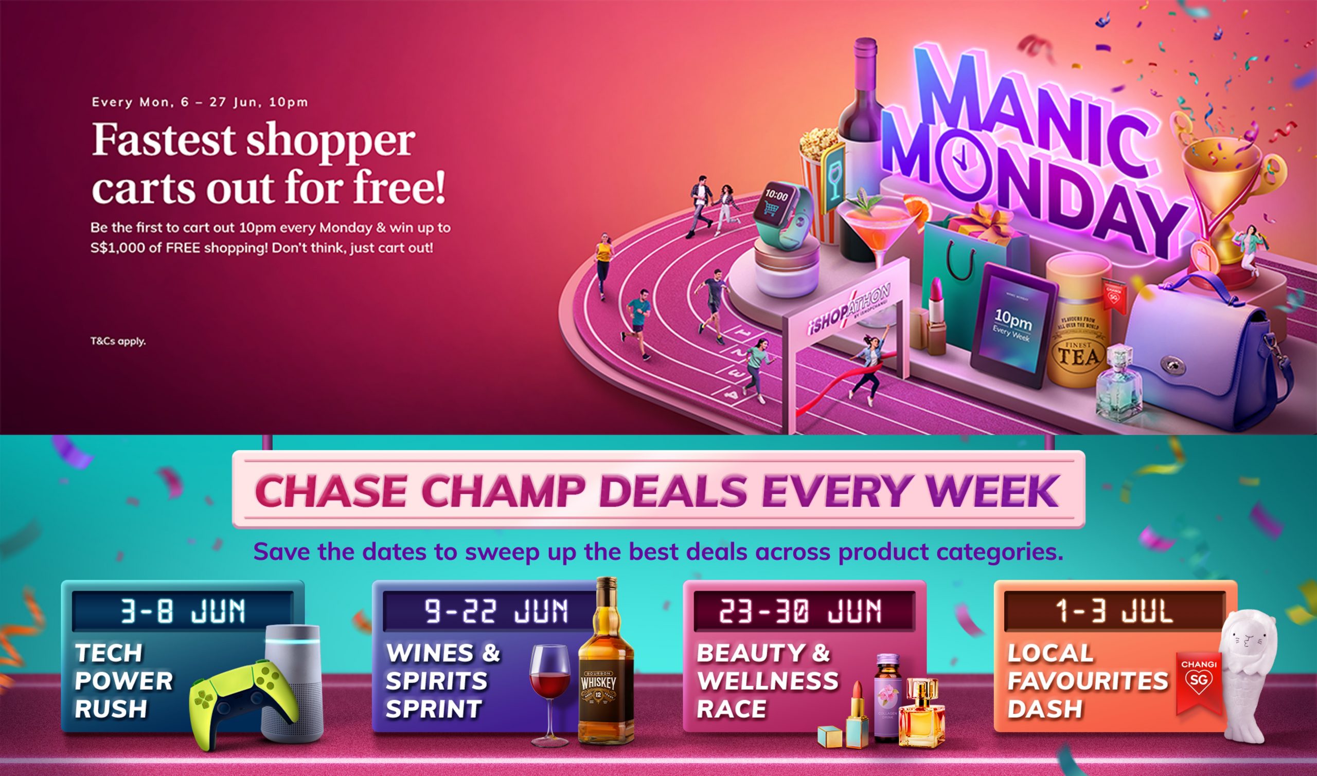 SINGAPORE – Media OutReach – 3 June 2022 – Bringing you some of iShopChangi’s most generous discounts to date, iShopathon by iShopChangi comes packed with site-wide flash sales, Manic Monday promotions, live streams and giveaways, and up to 70% off* wines & spirits, beauty & wellness products, electronic gadgets and more. Now is the moment to get on your marks, get set and shop on iShopChangi.