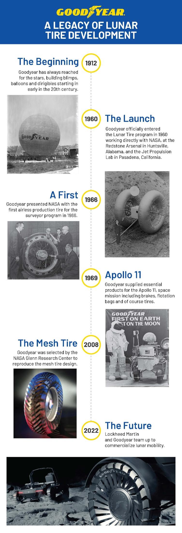 AKRON, OHIO – Media OutReach – 28 July 2022 – The Goodyear Tire & Rubber Company supplied essential products for NASA’s Apollo program, including the Apollo 11 mission which landed on the Moon 53 years ago today. The company will continue that tradition—focusing on lunar vehicle tires—by joining Lockheed Martin (NYSE:LMT) in its development of a lunar mobility vehicle.