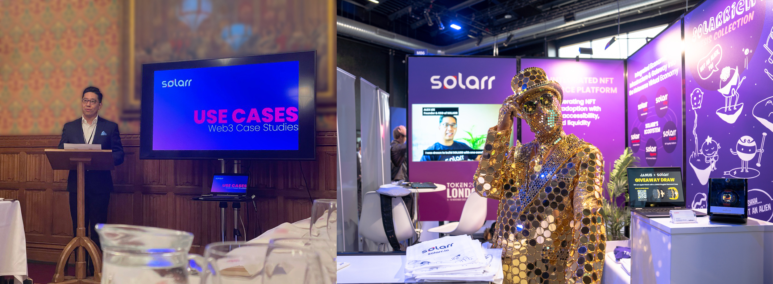 Right: SOLARR showcases Web3 use cases at TOKEN2049 London.