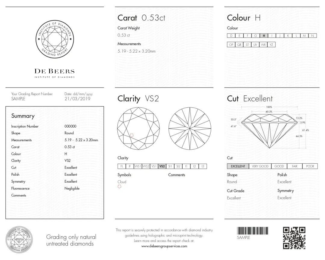 Diamond grading is always one of the most important categories to consider when purchasing a diamond. Therefore, DBIoD strives to provide exceptional professionalism and integrity. Building on over 130 years of experience, DBIoD combines 21st century technology and techniques with the leading industry standards to grade only natural and untreated diamonds. The combination of innovative grading systems and transparent published standards, ensures unparalleled accuracy and global consistency in grading. If you are interested to have your own diamond grading report, please register here.