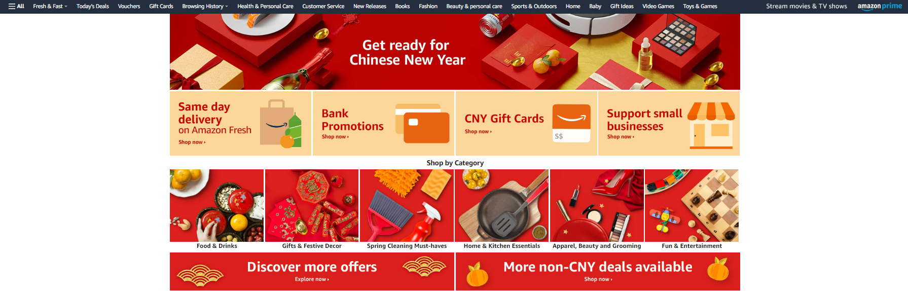 Amazon Singapore is the one-stop destination for essential products needed across a wide selection of categories to usher in the Chinese New Year, with incredible savings of up to 20% off essentials.