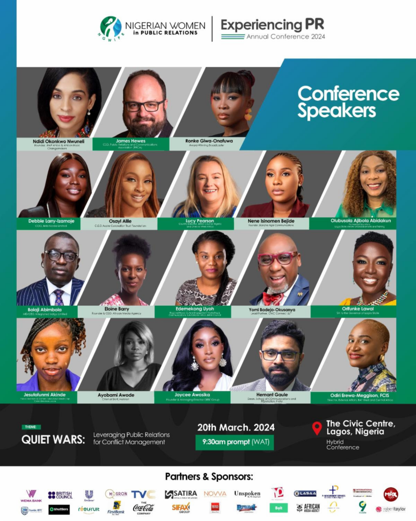 LAGOS, Nigeria, 19 March 2024-/African Media Agency (AMA)/-The Nigerian Women in Public Relations has unveiled its Keynote Speaker and a stellar lineup of partners and sponsors for its much-anticipated annual Experiencing PR Conference, set to take place on Wednesday, March 20th, 2024, at the Civic Centre in Lagos.