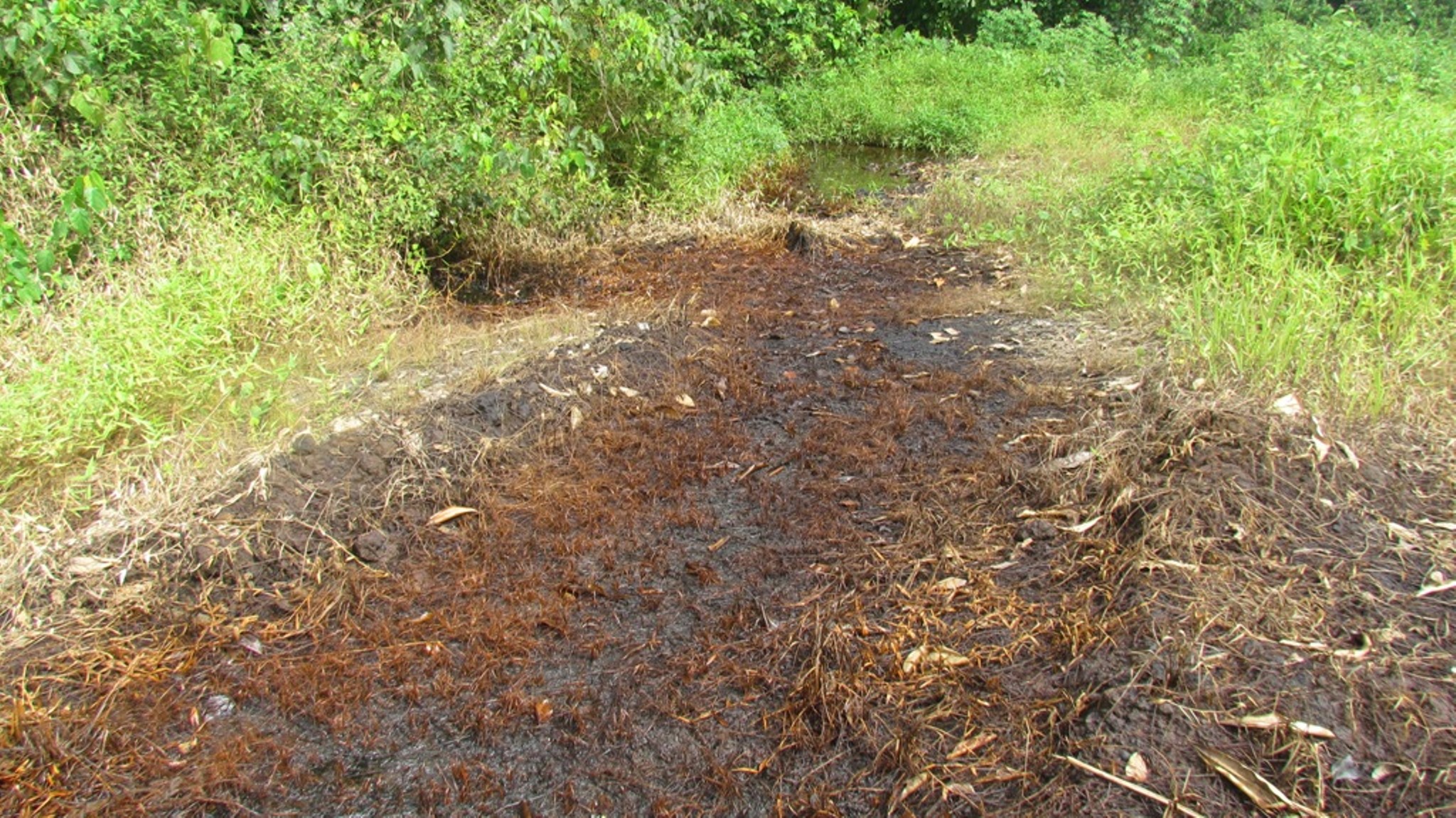 According to a field report on the incident, the spill site was discovered by field monitors of ERA/FoEN on April 18, 2015 while investigating another spill incident.