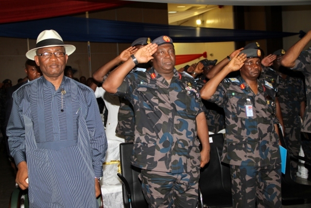 L-R: Bayelsa-Dep.-Gov.-Rear-Adm.-Gboribiogha-John-Jonah-Rtd-Chief-of-Air-staff-Nigerian-Airforce-Air-Marshal-Alex-Sabundu-Badeh-Rep.-of-the-COAS-AVM-I.H-Mohammed.
