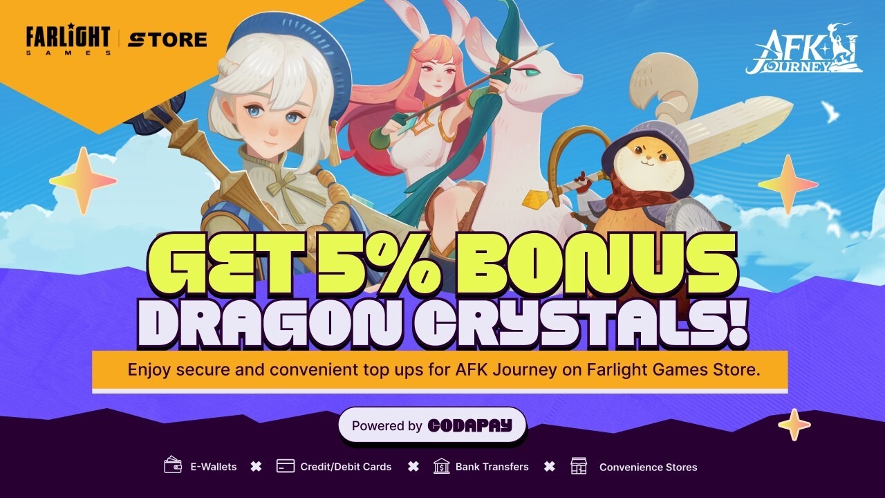 AFK Journey players can conveniently top up their Dragon Crystals on the Farlight Games Store using a variety of trusted payment channels powered by Codapay, including but not limited to: